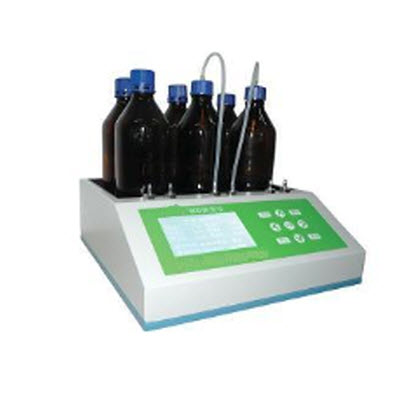 本仪器根据压差法测量原理设计,仪器模拟了自然界有机物降解过程:测试瓶上方空气中21%的氧气不断补充水中消耗的溶解氧,有机物降解过程中产生的CO2被密封盖中的氢氧化钠吸收,压力传感器时时监测样品瓶中压力的变化。生化需氧量BOD(即对应于测试瓶中消耗的氧气量)与气体压力之间建立相关性,通过仪器对这种相关性进行处理,进而在仪器屏幕上直接显示出生化需氧量BOD的值。