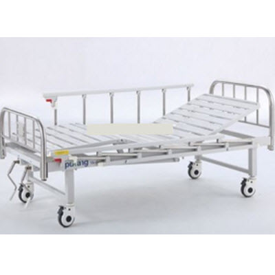 标准配置:不锈钢床头一副,铝合金折叠护栏一副,条版面,摇杆系统两套,引流挂钩二个, 输液插孔四个,Φ125双面单制轮四个。