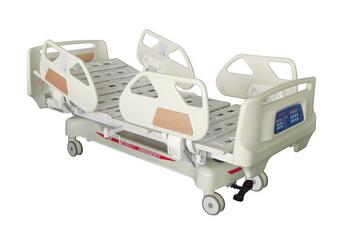 该床采用丹麦LINAK直线升降电机,静音无噪声,可承重250KG以上,护栏上有电脑操作面板,病人可更加方便操作(带护士控制器及CPR功能)、高强度、高耐磨的中控静音脚轮,使床移动灵活、轻巧、方便。配四个PP护栏(可上下定位)、输液架、引流挂钩。