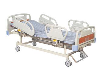 该床外型美观、坚固耐用,可承重250KG以上,摇手柄转动灵活并有两极空转限位装置。铝合金压铸脚罩,高强度、高耐磨的中控静音脚轮,使床移动灵活、轻巧、方便。配四个PP护栏(可上下定位)、输液架、引流挂钩。