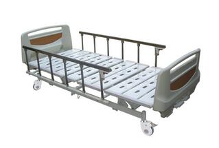 该床外型美观、坚固耐用,可承重250KG以上,摇手柄转动灵活并有两极空转限位装置。无噪声的静音脚轮(对角刹车),使床移动灵活、轻巧、方便。配铝合金护栏、不锈钢输液架、引流挂钩。