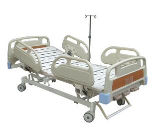 该床外型美观、坚固耐用,可承重250KG以上,摇手柄转动灵活并有两极空转限位装置。高强度、高耐磨的中控静音脚轮,使床移动灵活、轻巧、方便。配四个PP护栏(可上下定位)、输液架、引流挂钩。