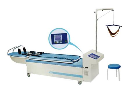 说明:该床为三围颈腰椎治疗电动牵引车,各项参数均由单片机控制,采用数码管显示,直线电机驱动。旋转、成角采用旋转编码技术,使角度控制更为精确,水平牵引、成角牵引、可同时进行,从而克服单一动作不足,实现三围牵引。