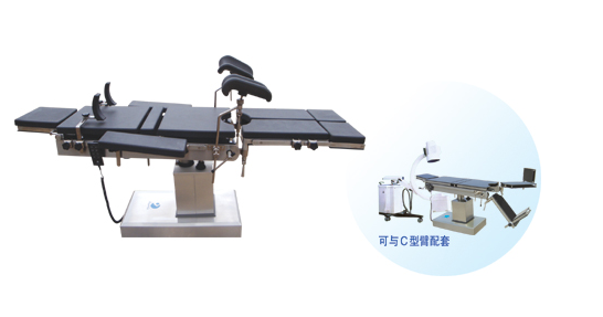 电动手术台供医院施行人体各部位手术用。该产品除具有综合手术台的所有功能外,还具有独特的优点:腿板既可外展又可拆卸,调节方便,十分便利泌尿科手术,台前作业可前后移动,且台前板全部采用高强度透光板制成,可进行X射线透视:台面平移、前后倾、左右倾、上下升降均由电动推杆实现,按钮操作。该手术台配合骨科手术架可施行骨科手术,特别适用C型臂X光透视及摄片。