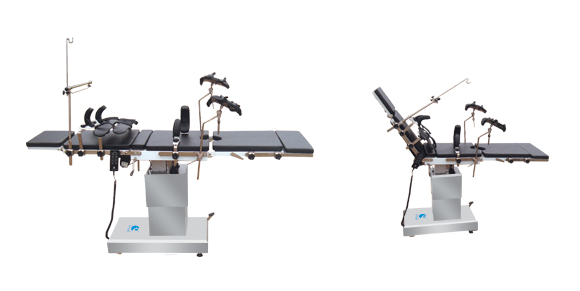 供医院手术室施行头、颈、胸腹腔、会阴及四肢等外科及妇产科、五官科、骨科等手术。腿板可下折90°及拆卸,十分便于泌尿科手术。台前升降,、前后倾、侧倾、背板转折均由电动推杆实现,操纵灵活、安全可靠。