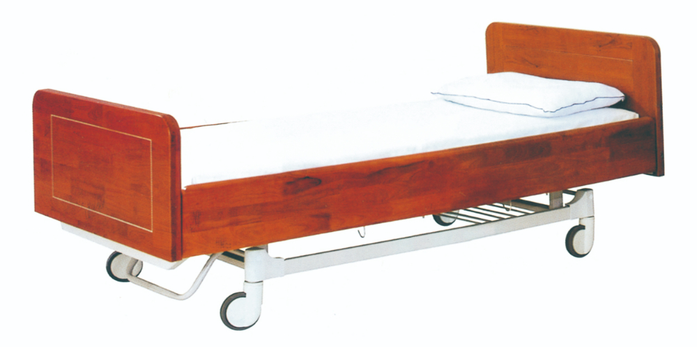 产品简介: 2130*980*530mm 油漆实木床头尾架 木条床面 铝合金护栏(可倾式) 带脚轮