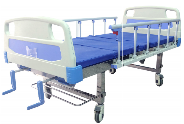 高出床垫可防止床垫移位,5 寸带刹脚轮,ABS 摇把,输液架 , 杂物架。
