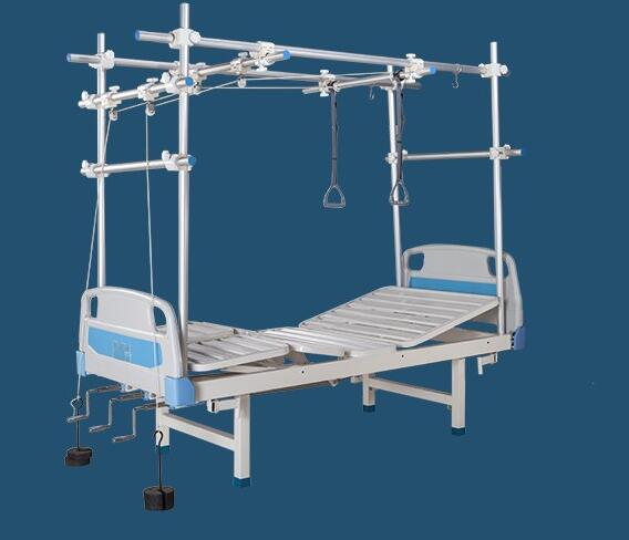 l 骨科牵引架采用多棱铝合金管,表面阳极氧化处理,安装简便,结构稳定,承重强,可实施多种骨科牵引,并配备锻练拉手2个,用于病人在床作恢复训练。