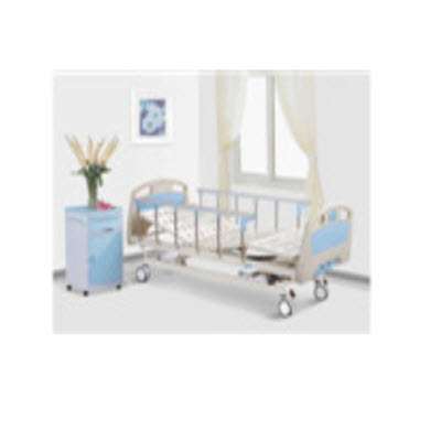 ABS浅天蓝色床头尾板1付、铝合金护栏1付、不锈钢输液架1支、钢喷塑杂物架1个、ABS病历卡1个、钢喷塑引流钩4个、中控脚轮1套。