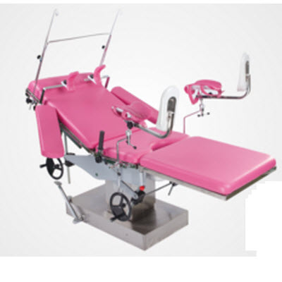 该床采用液压升降,床面前后倾及背板拆转采用蜗杆、齿轮、齿条结构。各种动作可在规定的范围内任意调节并锁定,操作方便。腿板可回转。所有外罩、污物盆,均为不锈钢制作,外表美观,易于清洁。
