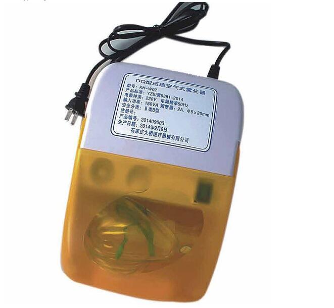 工作原理:通过压缩泵产生的压缩气体为动力源,产生负压,向上提起药液,变成微小的雾状向外喷出,达到治疗各种呼吸疾病