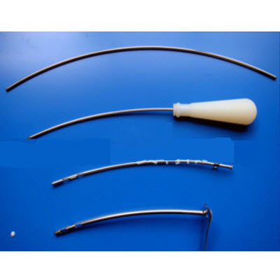 使用时将2和4装配到一起进行穿刺,穿刺到位后,抽出针芯,放入引流内针3进行引流。如果引流不畅,可以将件1放入件4 中抽拉几次即可。