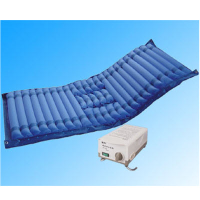 气垫是由气垫和气泵二部分组成,在气泵内增设配气机构,以每小时数次的频率驱动二组相互间隔的管状气室组成,与气泵的二组气路接通,随着供气气路的交替形成和缓波动,持续不断地变换卧床患者的受压部位。