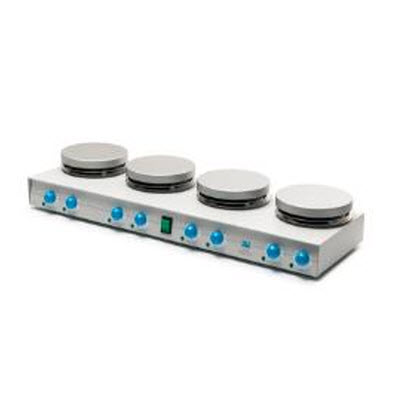 AM4加热磁力搅拌器是多位加热磁力搅拌器,有4个独立控制的磁力搅拌板块。AM4加热磁力搅拌器的铝板上附有一层特殊的保护层,确保热量分布均匀,且耐腐蚀。电子程序控制