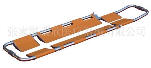 采用分离型刚性结构,转送骨折及重伤病员。两端设有离合装置,使担架分离成左右两部分。在不移动病人的情况下,迅速将病人铲入或从病人体下抽出担架。担架长度根据人身长可作随意调节。担架一端(脚部)采用窄框架结构。