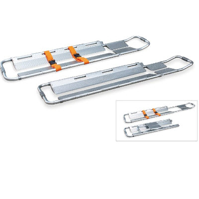 该产品采用优质的铝合金材料制成,按下两端离合装置可使担架从中间分离,在不移动病人的情况下,将其固定于担架上,可调节担架长度,易清洗消毒。