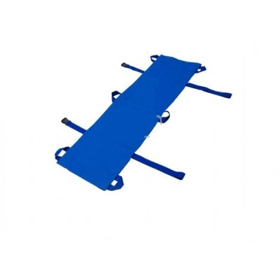 此款软担架,主要由担架面,加强带及套环构成。担架面料为多层厚实的牛津布料缝制而成;并在担架面的背面设置有加强带,软担架的周边有套环,可由多人抬着病人上、下楼梯,使用方便、省力、结构简单、实用,适用于各医院及急救中心救护病人。