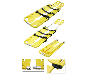 采用分离型刚性结构,转送骨折及重伤病员。两端设有离合装置,使担架分离成左右两部分。在不移动病人的情况下,迅速将病人铲入或从病人体下抽出担架。担架长度根据人身长可作随意调节。
