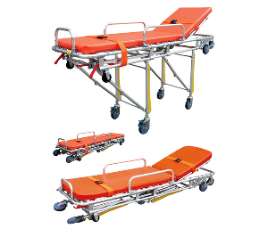 采用高质铝合金材料,配接件铝合金压铸。采用海绵软垫,使伤病员躺卧舒适。折腿机械结构,通过左右手柄控制。仅需一名救护人员把病人推上救护车。固定支架与救护车相固定,担架通过滑道上车后可锁定。