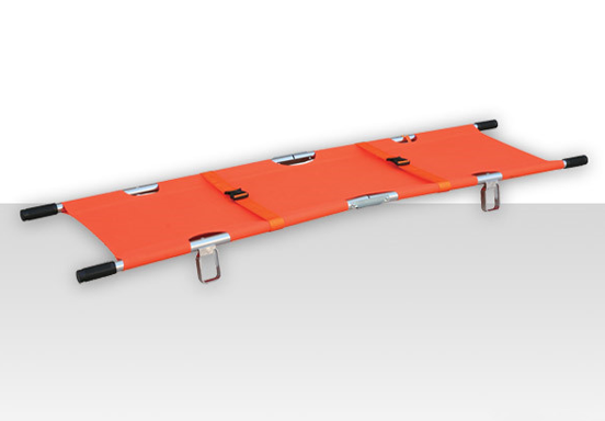 折叠担架采用高强度铝合金材料和牛津革担架面制成,它具有重量轻,体积小,携带方便,使用安全等优点,主要适用于医院、体育场地、救护车及部队战地运送伤病员。