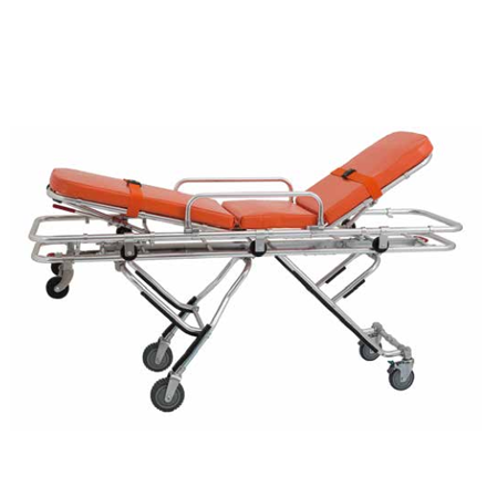 采用高品质铝合金材料,采用海面软垫,使伤病员躺卧舒适,该产品具有灵巧的结构,能便捷地实现多种姿态变换,通过左右手柄控制,仅需一名救护人员把病人推上救护车。固定支架与救护车相固定,担架上车后可锁定,通过分离装置,可使担架和底座分离,可以快速的教护病人。