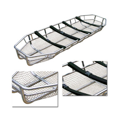 此担架的构造着眼于急救的特殊性,如崎岖的山区、空中或海上救援,框架坚固耐用,简便可靠的装置让操作人员能够安全快捷的采取急救措施。钩悬能与飞机上挂钩连接,实现野外救援。担架配有安全带和垫子。由不锈钢管和网制成,不会对病人造成另外的伤害,比普通担架更牢固,可与板式担架一起使用。