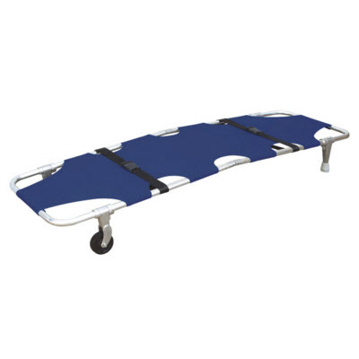 本担架带轮、带支腿,可折叠,采用高强度铝合金材料和牛津革担架面制成,它具有重量轻,体积小,携带方便、使用安全、易消毒清洗等优点,主要适用医院、体育场地、救护车及部队战地运送伤病员。