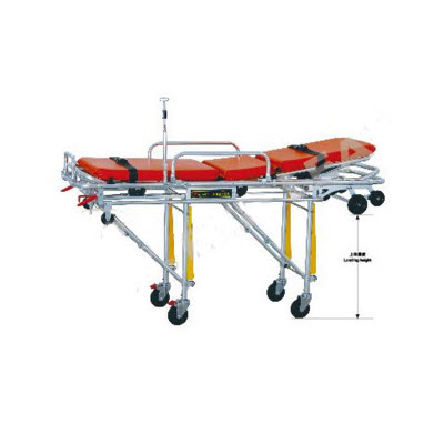 上车部位有大小两个轮子,根据救护车车厢高度,高度可三档调节,*高档上车高度为67cm,第二档65cm,*低档64cm;