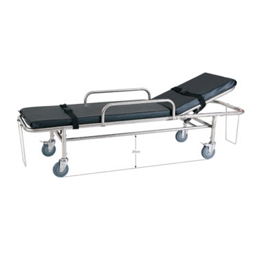 本担架车床垫采用防水海绵制成,靠背角度可调节,使伤病员躺卧舒适。