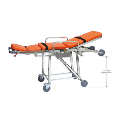 本担架折腿机械结构,通过右手柄控制。