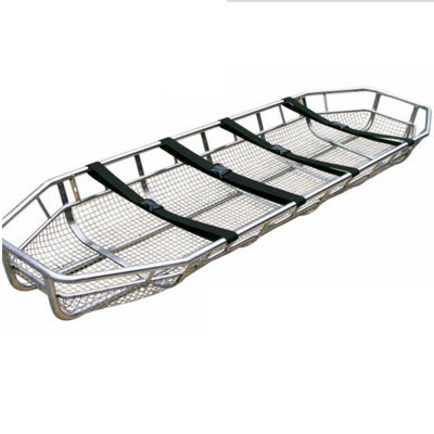 此担架又名篮式担架、吊篮担架,空吊担架,船用担架,直升机担架等。 采用无毒无污染释放的材料,具有防火和耐磨损和防侵蚀的功能,由不锈钢管和网制成,不会对病人造成另外的伤害,比普通担架更牢固,可与板式担架一起使用,易运输和储存。主要适用于如崎岖的山区、空中或海上救援。框架坚固耐用,简便可靠的装置让操作人员能够安全快捷的采取急救措施。悬钩能与飞机上挂钩连接,实现野外救援。担架配有可调节的脚部安全机械装置,安全带等。