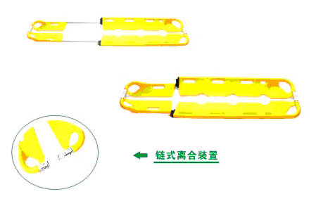 4、担架两端中部设计链式离合装置,可使担架分离成左右两部分;