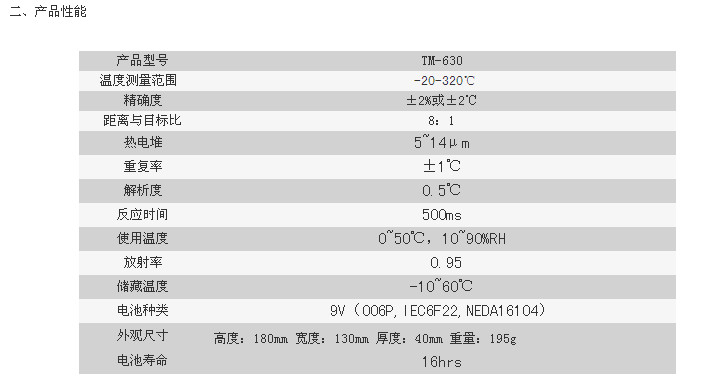 三、TM630红外线测温仪配置单