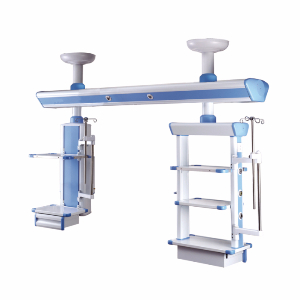 ICU旋转桥用于医院ICU病房,是现代重症监护病房必备的医疗辅助设备,主要由桥架、干段和湿段组成,其特点在于合理的干湿分离结构,湿段配置升级灵活的输液架和输液泵架。干湿段配置有可升降调节的医疗监护仪器平台,在干湿段上分别将氧气、空气、吸引、强弱电、网络输入终端配置在医护人员抬手可及的塔体上,湿段采用悬臂结构,提高了治疗空间,移动旋转部分采用机械制动防漂移,桥架中央配置照明治疗灯,为临床医疗提供了照明解决方案。干湿分离。阻尼制动。国产医气终端,湿段配置:二氧二吸二空,二个平台,一个抽屉,一个输液架,六个10A多功能插座,两个接地端子,干段配置:二氧二吸一空,三个平台,六个10A多功能插座,一个网络插座,一个输液架。一个抽屉,一个接地端子,横梁带照明灯一个,终端箱旋转角度340°