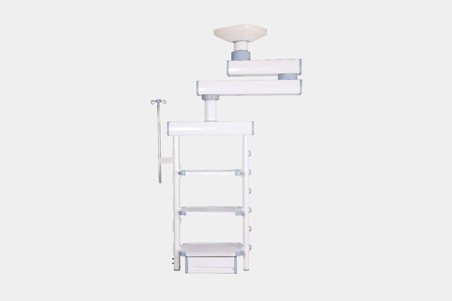 零臂、单臂、双臂、多臂;单塔、双塔多塔;机械塔、电动塔;机械刹车、气动刹车、电磁刹车;吊柱式、吊杆式、吊箱式箱体;气体终端、电源插座数据端口数量及制式;输液杆支臂、监视器支臂、输液架、网篮、平台抽屉、预留孔位等均可选配。