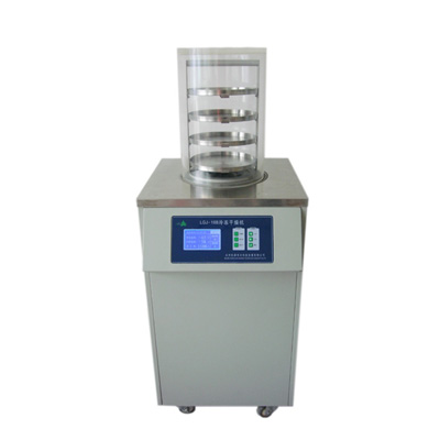 性能和特点:冷冻干燥机是将含水物品预先冻结,然后使其水分在真空状态下升华而获得干燥物品的一种技术方法,经冷冻干燥处理的物品易于长期保存,加水后能恢复到冻干前的形态并保持原有的生化特征。对于热敏物质如抗菌素、疫苗、血液制品、酶、激素等生物制品,冷冻干燥技术更能显示其优越性,适用于实验室样品的冻干实验及少量生产。
