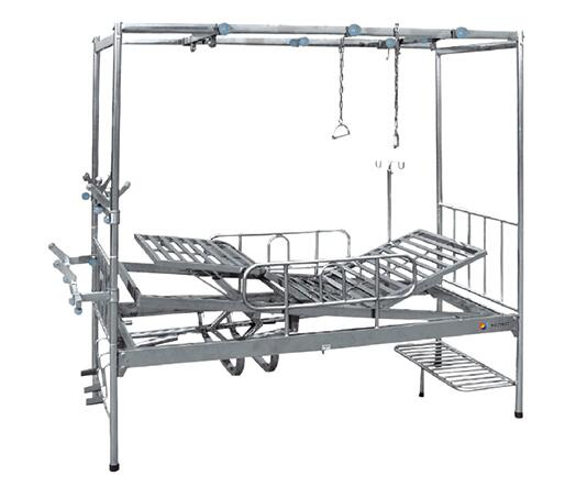 全钢质安全限位摇杆三支:标准骨科牵引架一套;床尾配护栏放置架两个;床框两侧各4个护栏插孔;不锈钢插式护栏--对;