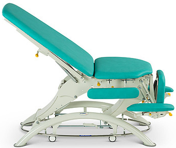 多重高度设定、方便使用的上臂支撑以及两侧支持、 腿部位角度的简单调节等完善了人体工程学以及保 证了治疗的有效性。