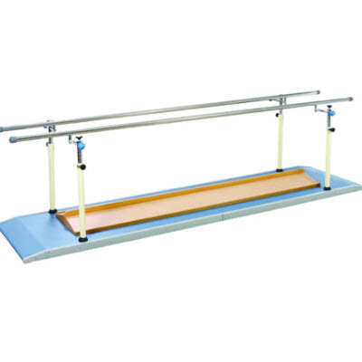 KB-01R儿童平行杠( 配内外翻足矫正板) 规格: 330×115×79-123cm,高度调节范围79~123cm,宽度调节范围34~64cm,杠杆直径¢38mm,,杠杆静载荷不小于135kg,矫正板坡度15°。 说明: 借助上肢帮助进行步态训练,矫正行走中的足外翻、髋外展,增加行走的稳定性。适合于骨关节、神经系统疾病患者及老年人的步态训练。练习中杠的高度和宽度可根据每个患者情况进行调节。