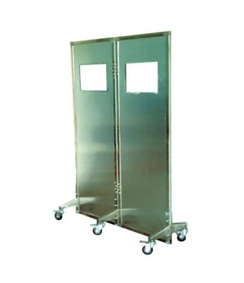 防护屏分为:单联、单联带侧联、单联升降、双联和三联 五个品种 防护屏采用铅复合不锈钢板,四周为不锈钢框架,中间带有26cm×36cm铅玻璃的观察窗,底部配有带刹车脚轮。具有防护性能高、可透视面积大、移动轻便、美观易清洁等特点 双联防护屏的尺寸为:190cm×60cm+60cm 190cm ×100cm+100cm 二个规格 防护屏的铅当量为:1mmpb、 2mmpb 二种 玻璃 2mmpb |