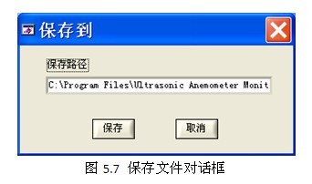 FC-09G Monitor软件可以自动将监测数据保存于电脑硬盘当中,以备使用者后续处理。单击工具栏中的“文件->保存”进入保存界面。软件默认的保存路径为安装路径下的SaveData文件夹,用户也可以更改保存路径。如图5.6所示。单击“保存”按键软件则自动保存风速,风向和温度的数据为txt文件。文件名为“wind****”,其中****代表数据的月日时间。如果数据监测时间较长,则保存数据会每天建立一个文件,以备用户查询时间。
