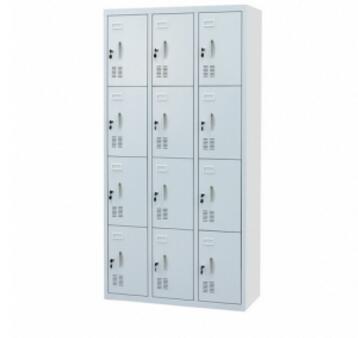 钢制喷塑12门鞋柜选用优质SPCC冷轧钢板,表面采用环保涂料静电喷塑,平整光滑.无气味、无毒害、无脱落等现象.