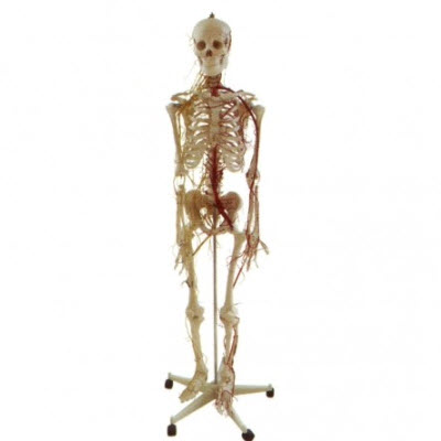 BM1002人体全身骨骼附主要动脉和神经分布模型示全身骨架,串制直立。