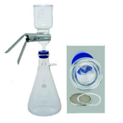 该组合包含容量为300ml的玻璃漏斗组、直径47mm玻璃过滤基座含不锈钢过滤垫片、夹具、胶塞及1000ml吸引瓶。