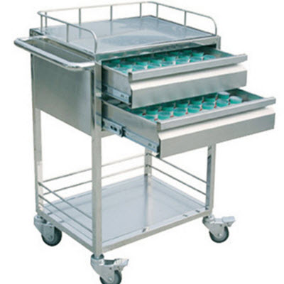不锈钢口服送药车分为上下两层,均带有不锈钢护栏,上层带抽屉。采用静音滑轨,抽拉轻松灵活。外型美观,平整、端正、四角平行,表面无锋棱、毛刺等明显缺陷,各焊接部件打磨平整光滑,抛光均匀。配置优质高级静音脚轮,承重50kg重物时,推动轻松灵活,无蛇行行走及异常噪音。