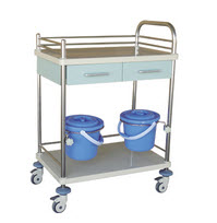 备注:优质不锈钢及铝合金材质、双层双抽、台面米黄、抽屉果绿、两圆污物桶、一消毒瓶架。(选用优质静音轮、静音伸缩导轨、并可根据客户需求更改颜色、尺寸或配色)