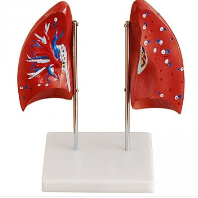 本模型自然大小,分成4件。两瓣肺叶可取下,示其内部结构。有底座。