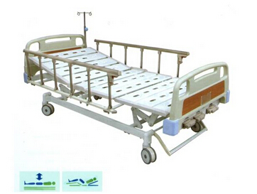 材质介绍: 材质:1、可拆卸ABS床头床尾板,床框采用30*60矩管焊接成型,管壁厚度1.2mm。 2、床面优质冷轧钢板折弯冲压成型。 3、病床整体酸洗磷化静电喷塑涂装,无毒无残留。 4、丝杆带过盈打滑装置, ABS塑料隐藏手柄。