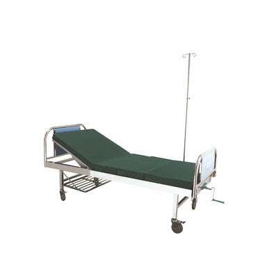 说明:供病员休息、诊断、治疗、康复用;床架、床脚为优质碳钢或不锈钢。床面采用高档进口实木木条板或ABS床面板;传动部件采用两极空转限位装置,配高档防撞耐磨静音脚轮;配置不锈钢折叠式护栏;可选配床头柜、输液架、床上餐桌、杂物架等;