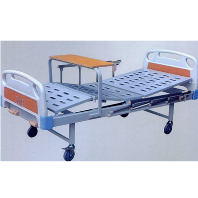 3、ABS手摇柄伸缩隐藏式拉杆系统,隐藏时跟床尾板平齐,避免碰撞医务人员的双脚,更方便于护理操作,安全可靠。
